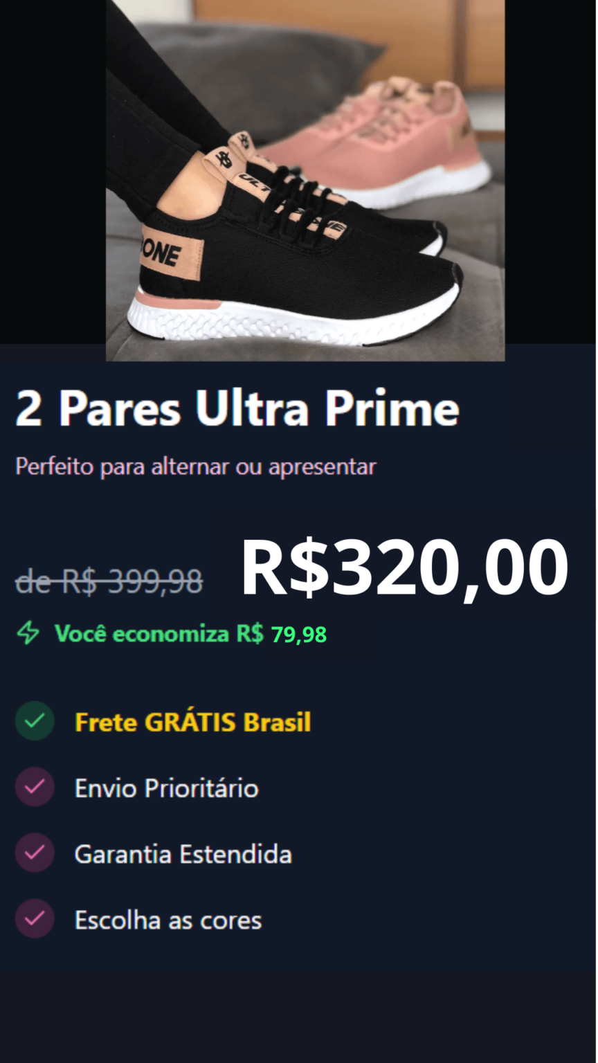 O valor pode variar de acordo com a oferta escolhida (1 par ou 2 pares). As promoções são por tempo limitado e ficam disponíveis diretamente na página de compra.